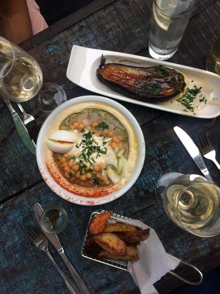 La terrasse et les bons plats de « Hummus & Friends »