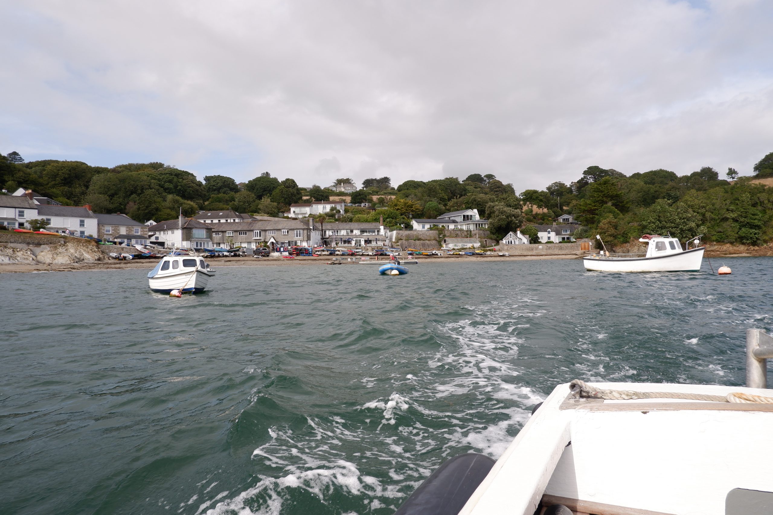 La pluie s’étant calmé, nous avons décidé de prendre le bateau pour aller en face, à Helford. Ici c’est un bateau taxi : il t’emmène quand tu veux et te ramène quand tu le rappelle. C’est assez drôle a faire ^^