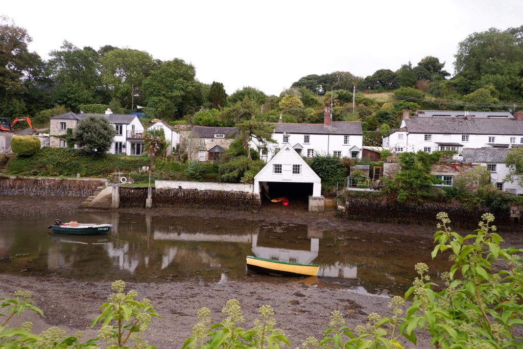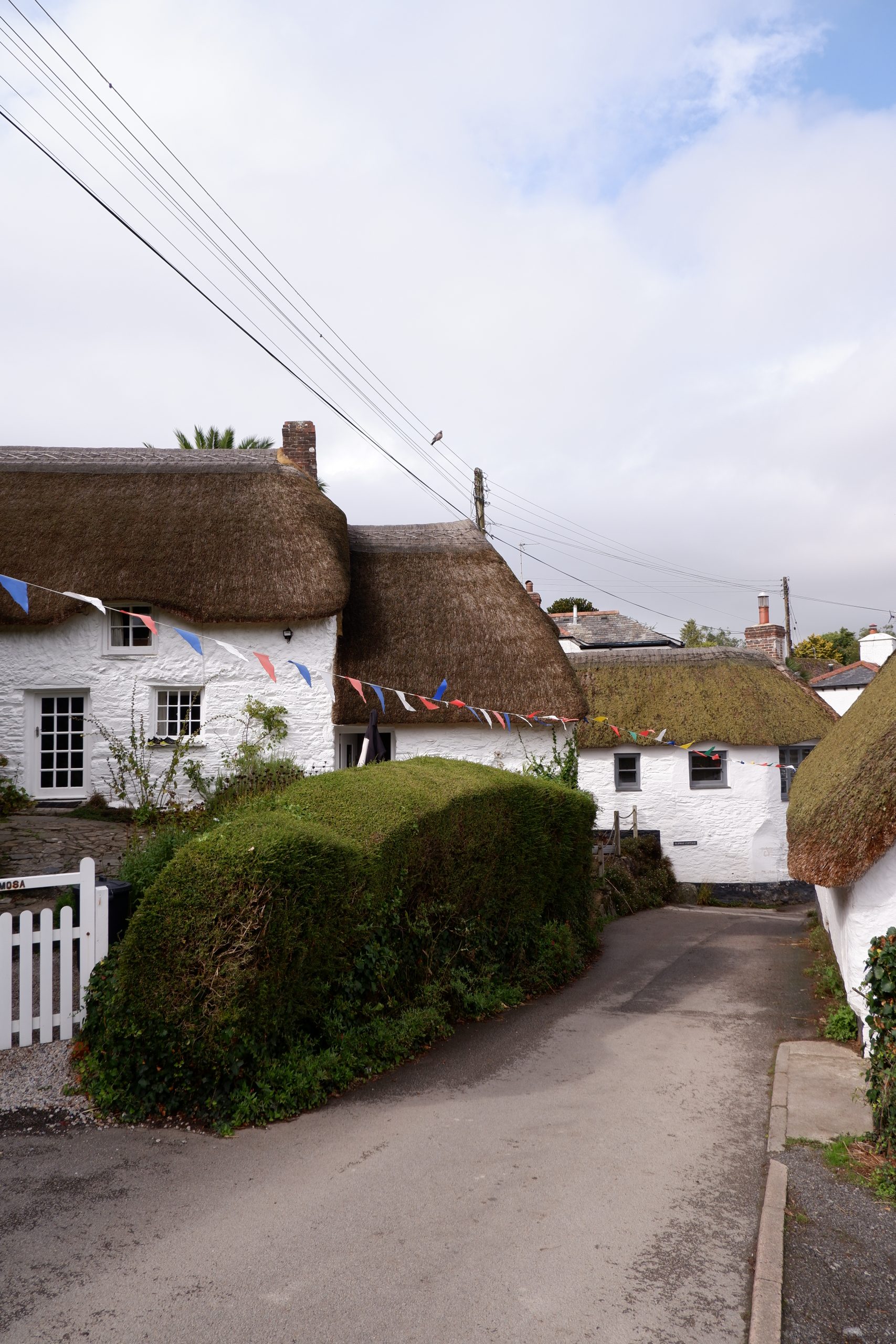 Helford est ce que je voulais voir de la campagne anglaise: de jolies maisons en toit de chaumes, des jardins fleuris… Malheureusement, cette ville était déserte ce jour là (le lundi n’est pas le meilleur jour) et la pluie s’est remise a tombée ! Le seul pub du coin (Shipwrights Arms) nous a abrité le temps que ça se calme et que nous puissions revenir ranger nos affaires…