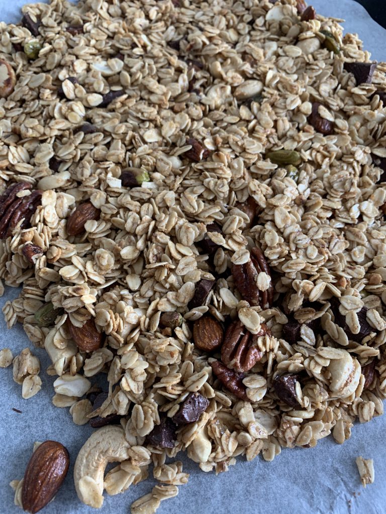 J’ai testé pleeeeeins de recettes différentes, et je crois que j’ai trouvé celle que j’aime : pas sec, qui fait des gros morceaux chunky, hyper gourmand !
