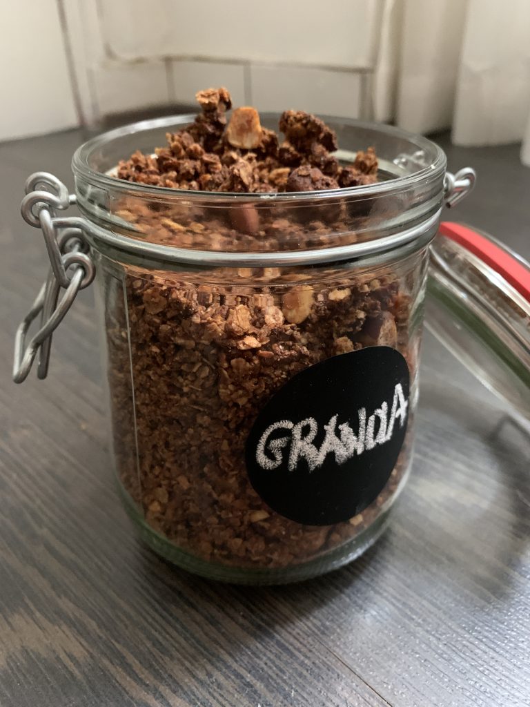 A marier avec du lait, végétal ou non, dans le yaourt, ou juste à grignoter en barre ! Je le garde environ 1 semaine dans un pot en verre 🙂
