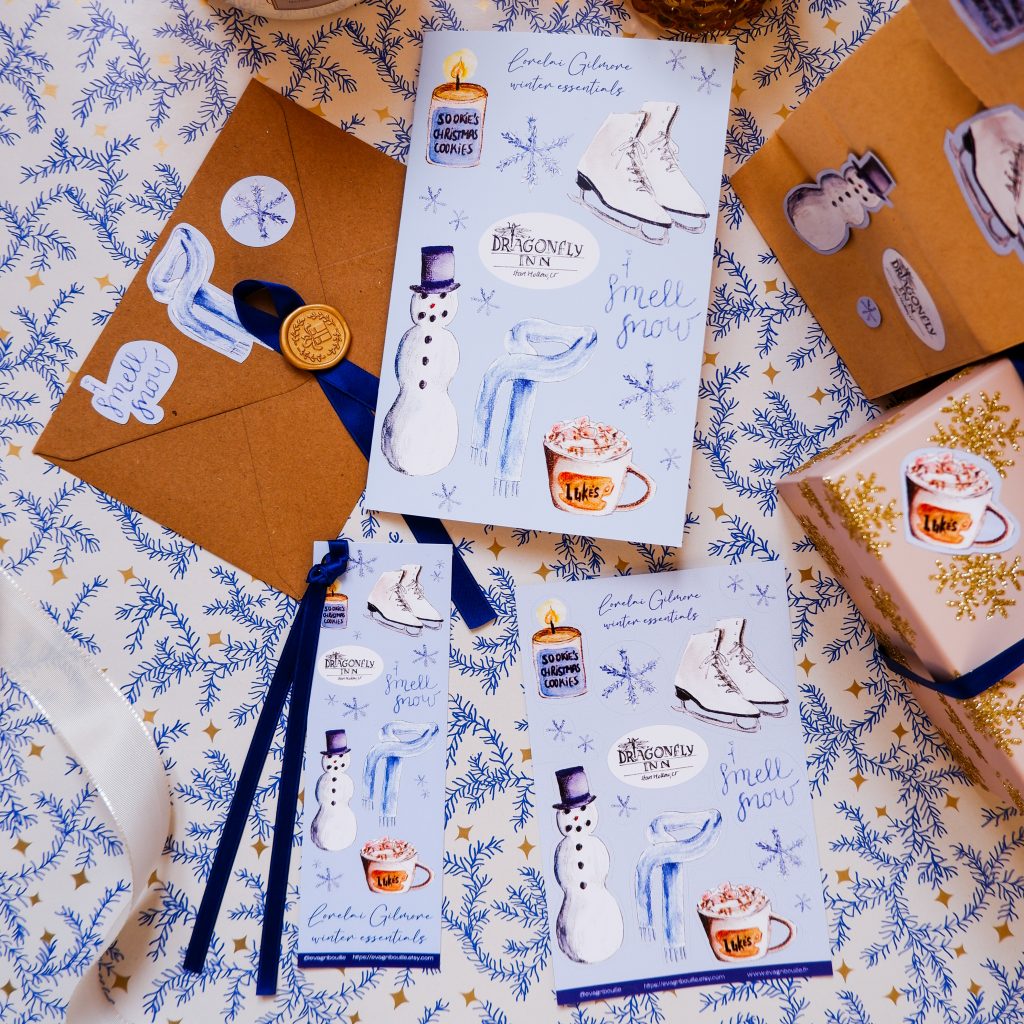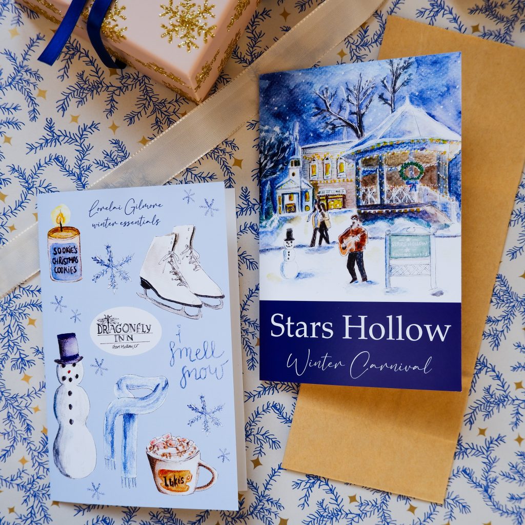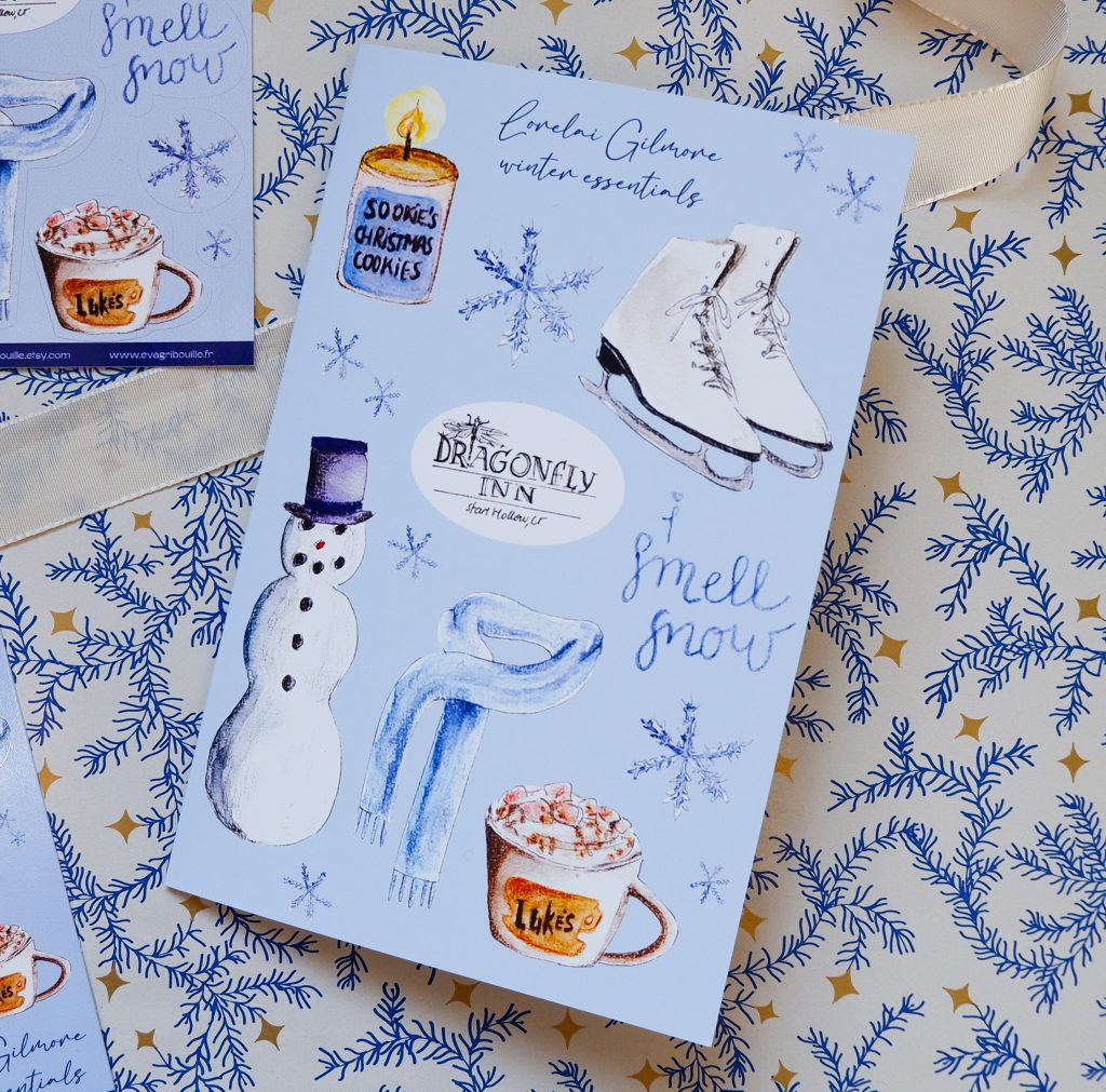 Au RDV : sticker, cartes de voeux et marques pages, inspiré du Winter festival de Stars Hollow et des clins d’oeils aux essentiels de l’hiver de Lorelai Gilmore !
